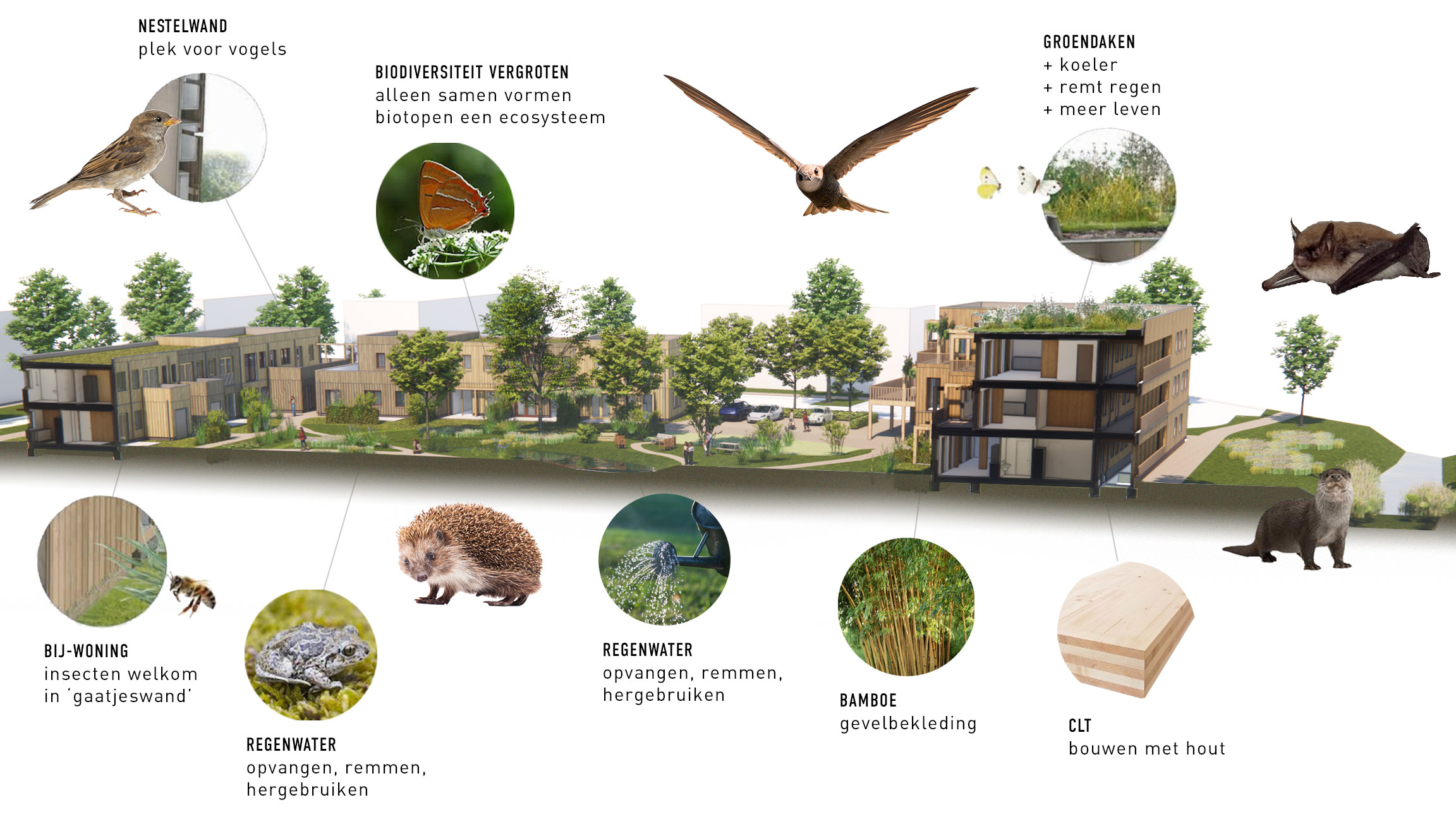 Collectief particulier opdrachtgeverschap bracht een zeer rijke variatie; ruim 25 verschillende woningen die toch bij elkaar passen. We namen de bewoners mee door keuzeopties en overeenstemming. De basiswaarden komen vanuit de groep zelf; samen, groen, delen, bio-divers, duurzaam, milieubewust en natuurgericht.